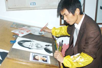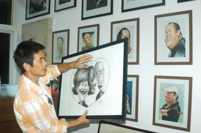 艺术与市场鱼与熊掌兼得10,潜江市农民漫画家李克雄将自己漫画新作挂上墙,在刚刚结束的第八届中国漫画大展评选活动中,他的肖像漫画《曼德拉》入选,湖北仅有2人获此殊荣。现年40岁的李克雄是潜江市棉花原种场的一位农民,自幼坚持自学绘画。1997开始自学肖像漫画创作,他先后到过北京、武汉、丽江、重庆为顾客画肖像漫画。在国内,漫画作者主要靠稿费获得作品发展的回报,而李克雄以直接面向市场的方式省去了这一中间环节,并获得不菲的收入。李克雄在圈内的声名鹊起,他的漫画价位也”水涨船高”,他为顾客画的黑白和彩色的肖像漫画作品平均600-2000元一幅,现在每天也有3-4张的订单。在应对市场之余,李克雄花大气力抓名人肖像漫画创作,他的作品形神兼备、轻松概括极具亲和力,在国内肖像漫画领域独树一帜,得到众多漫画大家的肯定。作品频频走进中国美术馆,走出国门,在国内外的权威漫画大赛上获大奖,各大漫画报刊常年向他约稿。李克雄先后出版过几本漫画集,中央电视台等新闻媒体曾对他的事迹进行过报道。当艺术遭遇市场,李克雄通过不断的摸索与实践,找到自己的立足点和生存方式,实现了鱼与熊掌兼得,他的经验被业内人士所推崇。 本报视界网吴燕军摄