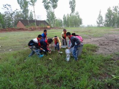 4月22日上午,刚刚到校的郧县刘洞镇姚沟小学的小学生们自发地组织起来,带上卫生工具来到校外的一个空地上开展清除垃圾、保护校园周边环境的社会实践活动。当日是第45个“世界地球日”,今年主题为“珍惜地球资源 转变发展方式——节约集约利用国土资源共同保护自然生态空间”。小学生们以自己的“微力量”表达他们对地球的珍爱和呵护,并倡导全校师生“小手拉大手”一起行动起来,净化环境、保护地球,给地球一个健康的“身体”就是留给了我们一个宝贵的生命。(本报视界网 张文平摄)地址:湖北省郧县刘洞镇姚沟小学 电话:13593767238 邮编:442525