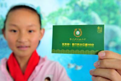 一个月后,每名学生的账户余额变换成定期储蓄账户,仿照银行储蓄利率每月给予一定的定(期)活期积分利息,每月、每学期、每学年、六年学习结束时对累计账户实行结算,对每月积分前两名的小组和前三名的个人作为当月“道德模范储户”,不仅奖励一张纪念卡,而且在校园宣传栏展出其事迹和照片。