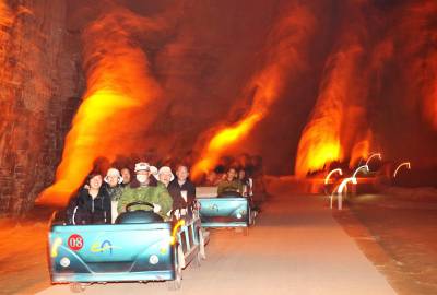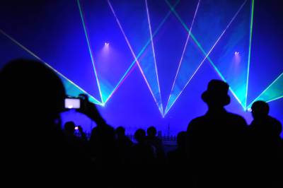 2010年4月10日,游客在利川市腾龙洞风景区观看激光秀。随着沪蓉西高速公路的全线贯通,曾经藏在深山的湖北恩施土家族苗族自治州旅游开始热起来,今年一季度游客达到125.12万人次,比去年同期增加25.27%,旅游综合收入达到5.65亿元,比去年同期增加34.2%。