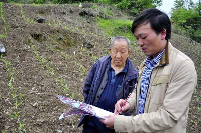 4月23日,恩施市红土林业站技术员正在入户核实外业普查情况。