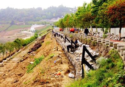 4月23日,秭归县城徐家冲港湾段库岸治理工程正在加紧施工。