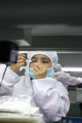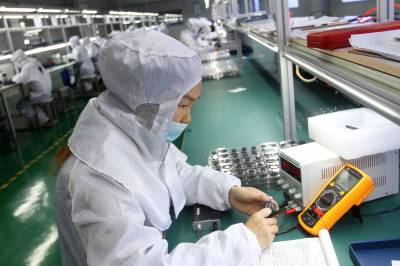 4月23日,竹溪满华光电科技有限公司员工在加工电子产品。生产电源项目、精密电子元器件的满华光电科技有限公司元月14日投产,今年有望实现产值5000万元。位于南水北调中线水源区的竹溪县,近年坚持生态、绿色、科学发展思路,积极培育生物医药、新能源、农产品加工、电子信息等新兴产业和高新技术产业,让农民在家门口就业、增收。据统计,今年新投产企业吸引2000余名外出务工人员不外出而进本地企业,在家门口上班,近年,有近万名务工人员回流,在家门中增收。
