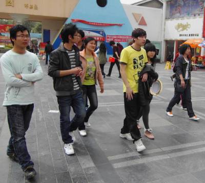 【通讯员罗超】几日来,持续升温,湖北宜昌一下子好似走进夏日。大街小巷青春男女,不禁穿上短袖夏装,提前进入夏季。图为宜昌儿童公园门口年轻小伙子们身着夏装度双休。