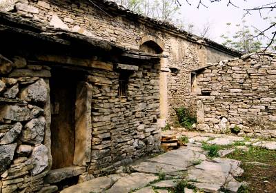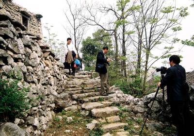 湖北省武穴市田家镇办事处山上村,位于该市西南角四十八里关山中段,全村8个自然垸荞麦塘、连二塘、轮镜塘、六合棚垸、葛麻塘、大塘等因散落在地处大栗尖列脑(主峰栗儿垴海拔449.3米)半山峦间,由于交通不便,老百姓自己取山中的片石、块石筑屋而居,乃有冬暖夏凉的特色,尽管如此,由于进出全靠肩挑手提,全村415户、1556人于20多年前几乎全部自发迁徙到山外。近年来,由于“通村公路”改善了山上村与外界的联系,这里村民生活了300余年种下的参天古树、无公害的山野菜、自然条件下生长的果树以及石屋奇特的风景,再加上这里曾经是1928年中国共产党广济县委以轮镜塘为中心,成立了苏维埃政权,成为红色根据地以及共产党蕲春、黄梅、广济税务专员汪新为保护国家财产不受损失,纵身跳下100余米山洞、壮烈牺牲等传奇故事吸引来自大都市的的旅游、摄影采风创作和祭奠烈士的人群,一些村民瞄准了这一商机,返回村开店迎客,将地地菜、山野菜、香椿芽和野山菌、地菌菇采集来热卖给外地来的客人,使尘封了近30年的的山村又有了新的生机。本报视界网冯怡红摄