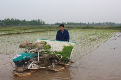 4月23日,云梦县沙河乡张皖村农机大户聂士辉正在田间用机械抢插早稻秧。该县农机部门发挥农机大户和农机专业合作社的示范作用,结合水稻机插秧示范区项目建设,大力推广机械化插秧,今年全县水稻机插面积计划达到5.5万亩。 本报视界网陈群 肖元玲摄
