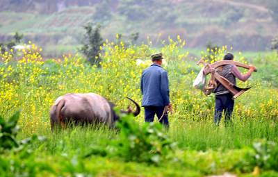 11日,宣恩县珠山镇莲花坝村的村民去田间耕田。(视界网签约摄影师:宋文摄)