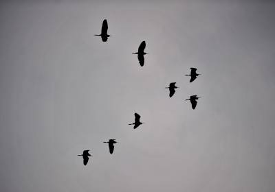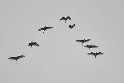 11日,宣恩县城上空,一队带队飞行的白鹭。