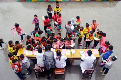 24日,云梦县疾控中心冒雨在伍洛镇中心小学举行“全国儿童预防接种日”宣传活动。4月25日是第29个“全国儿童预防接种日”,今年的宣传主题为“接种疫苗,保障健康”。当日,医务人员通过发放宣传资料、设置展板、现场咨询等形式向学生们普及预防接种知识。 王云清 摄