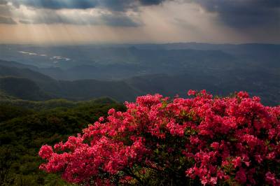 万丈霞光映山红,岭上杜鹃唱英雄