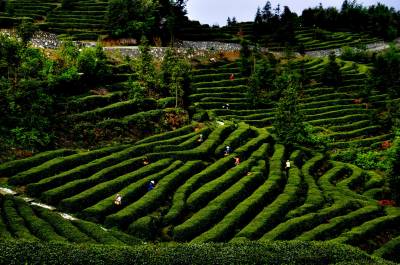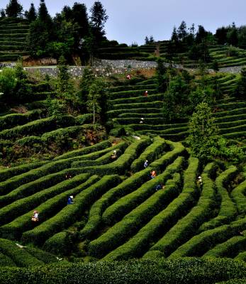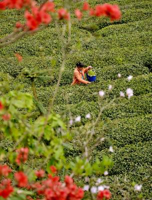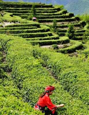 巴东:春茶飘香,林业龙头企业显风流 4月22日,采茶工正在湖北金果茶业有限公司巴东县溪丘湾乡铧厂垭茶叶基地采茶。