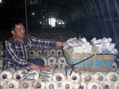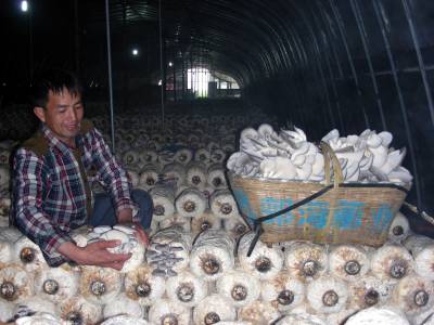 4月25日,黄梅县华航无公害食用菌专业合作社理事长郭尚虎在在食用菌种植基地采摘鲜蘑菇。郭尚虎系该县分路郭湾村青年农民,于2010年成立华航无公害食用菌专业合作,采取“合作社+基地+农户”和统一购种、统一管理、统一销售的模式,发展食用菌生产,产品远销江西、安微等地,使小蘑菇崛起大产业。目前,该合作社由最初分散的20户发展到如今拥有3个专业食用菌种植基地、从业人员达160多人的生产规模。仅去年,种植食用菌100万袋,生产双孢菇、秀珍菇、鸡腿菇、茶树菇、黑木耳等食用菌18万多公斤,实现产值800多万元,吸收周边近300名农民参与季节性劳务,年人平仅此增收2万元以上。(本报视界网 吴志雄 摄)