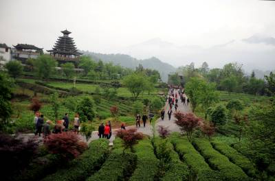 4月26日,河南省的近600名游客,乘旅游专列来到湖北省恩施市,走进恩施市芭蕉侗族乡枫香坡景区体验洗肺之旅。
