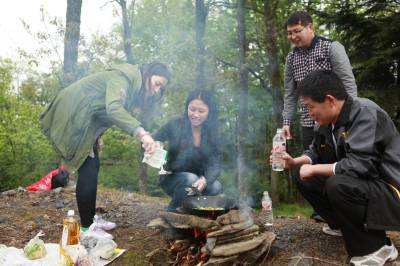 湖北十堰:书香满园春意浓 樱满枝头花正好 校园为民众开放赏花