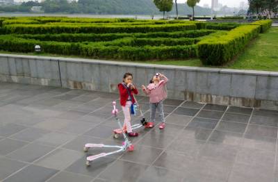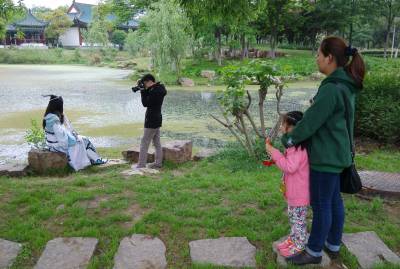 4月26日下午,不少武汉市民来到月湖公园休闲娱乐,放松身心。