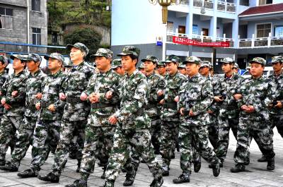 民兵汛前演练 4月27日,在恩施市红土乡文化广场上,民兵应急分队队员正在演练。 连日来,该乡开展民兵应急分队训练活动,旨在提升处置突发事件的能力。来自红土、石窑两个集镇的60多名民兵和应急分队队员,通过开展警棍盾牌应急处突队形、轻武器操作使用、地质灾害抢险、森林防火扑救等训练方式,切实提高民兵实战水平和维护社会稳定、自然灾害抢险、紧急情况应急等快速反应能力。培训了一支应急救援 “召之即来、来之能战、战之能胜”的精干队伍。(本报视界网彭绍峰胡清华摄)