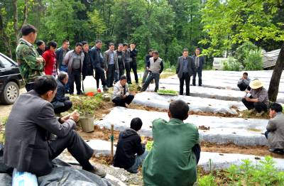 4月28日,恩施市舞阳坝街道办事处阳鹊坝村,烟叶技术员向修志现场向烟农们传授烟叶移栽技术。 连日来,该办以党的路线教育活动为契机,聘请农业技术专家、组织农技人员深入农村田块,开展烟叶、蔬菜、茶叶等方面的技术指导服务,采取现场会、专题培训等方式设立农业“微课堂”,指导农民春耕生产。目前,该办已开展农业“微课堂”技术培训22场次。 本报视界网 王家政摄