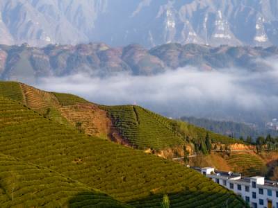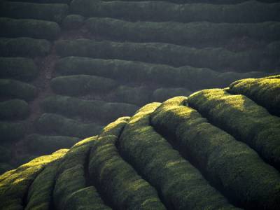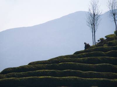 4月11日,拍摄于湖北省鹤峰县走马镇木耳山。随着生态农业、观光农业、特色农业的快速进展,该镇一万多亩无性系良种茶叶基地,不仅富了茶农,还带动了当地旅游业的发展。郁郁葱茏的茶山,波澜壮阔,一行行错落有致的茶树,奏响春天绿色的旋律。
