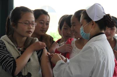 本着“知情、自愿、自费”的原则,安陆市卫生防疫站积极做好春季乙脑疫苗接种工作。图为:4月29日,安陆市接官乡卫生院服务到学校,给部分初中生接种乙脑疫苗。
