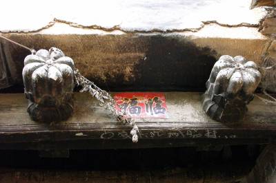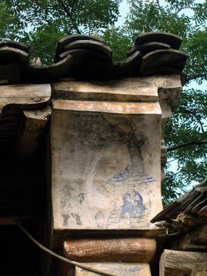 十堰市郧县刘洞镇五泉村有一处清代民居,至今保存完好。据屋主人介绍,这处民居建于清代,占地600平方米,属四合院式精美建筑,已有两百多年历史。建筑以土木结构为主,院子里的地面上有卵石铺成的美丽图案。大门左边设有瞭望口,四合院后堂留有后门。建筑的门、窗、檐、柱雕有各式图案,房檐两边还画有古人江边垂钓图。特别是古民居上的瓦当,均为人面图案,这在中国古建筑中极为少见。(视界网签约摄影师:曹忠宏摄影报道电话13294212877)