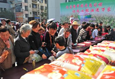 “爱粮节粮”宣传进社区 4月30日,湖北省宜都市陆城街办社区的群众在参加“爱粮节粮”宣传有奖问答活动。当天,由宜都市粮食局组织的“让爱粮节粮成习惯、让放心粮油进万家”宣传活动走进陆城街办胜利社区,该活动以爱惜粮食,杜绝浪费为主题,动员人们“爱粮节粮从我做起”,并向前来参加活动的1000多名社区群众发出了的倡议书。 曹礼达摄