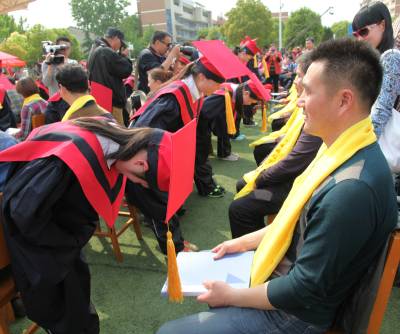 > 襄阳长春外国语学校让即将毕业生向父母敬叩谢礼