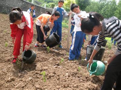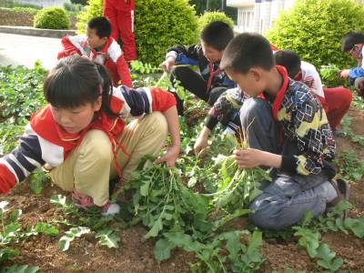 郧县居峪小学拓展校本课程渠道,把劳动实践活动落在实处。近日,学生在学校实践活动基地给春萝卜、白菜、辣椒等蔬菜, 间苗、除草、施肥。