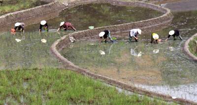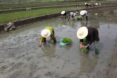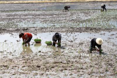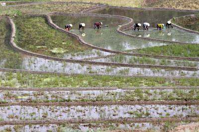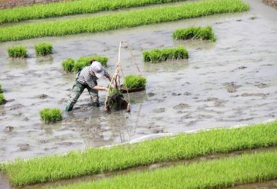 5月1日,竹溪县中峰镇农民在插秧。随着气温升高,竹溪县水稻全面进入插秧期,五一劳动节,竹溪县各地农民抢抓时节进行插秧,田野处处可见农民忙碌的插秧身影。