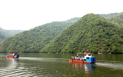 谷城五一小长假客量和旅游收入双超历史 五一小长假期间,到谷城县南河小三峡、薤山国家森林公园、五山镇堰河乡村游等重点景区的游客剧增,呈现出超历史、超容量的喜人景象,三天共接待游客7.25万人次,与去年同时段相比增长60%,旅游收入4408万元,同比增长77%。图为游客乘船游览南河山水风光。 谷城县城粉阳路33号(县宣传部)帅瑜 摄 (邮编441700)