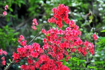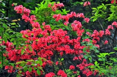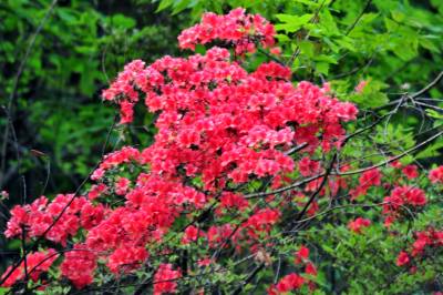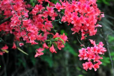 2014年5月1日,宜昌市夷陵区邓村乡山林间开满了鲜艳的映山红。连日来,宜昌乡村田野的映山红争先恐后地冲破严冬的樊笼,在春风的召唤下吐露生机,一朵朵鲜红的花瓣铺地盛开,婀娜娉婷的风姿开得鲜艳如霞、泼泼辣辣,就像一团团、一堆堆、一片片燃烧的烈火,映红了漫山遍野,向人们报告着春天的消息。