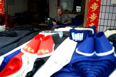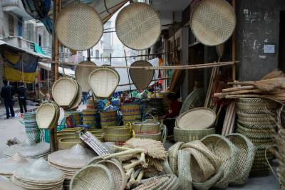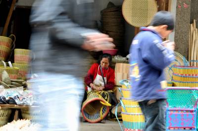 4月11日,利川市中山路一店铺里挂满了待售的背篓和簸箕(图一),主人正在手工生产背篓(图二)。今年57岁的牟老汉从10几岁开始便在这条老街经营裁缝铺生意,所缝制的服装远近闻名(图三)。临近的店铺每年靠销售拖把和扫帚等产品可收入2万多元(图四)。据了解,这条老街聚集着十几家生产加工簸箕、拖把、背篓等日常生活用品的老店,而且产品纯属手工制作,所以被当地百姓称为”手工一条街”。采访手记:老街其实并不老,因为住在老街上的人每天都在用双手为更好的生活而努力奋斗,每一个在老街中成长起来的人,他们的生命已经和老街紧紧相融。