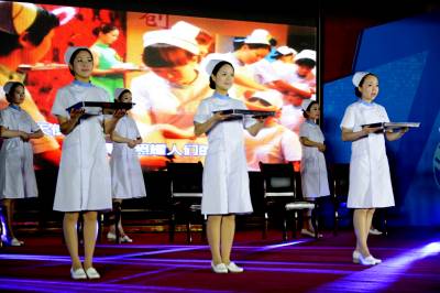5月4日上午,在武汉市江汉区举行的庆祝"五四"运动九十五周年暨青年文明号二十周年纪念大会上,来自该区公安、教育、国税、农商行、卫生等行业的青年,进行了争创青年文明号的职业风采展示,他们结合各自的行业特点,向观众展示了他们蓬勃向上,爱岗敬业的形象,来庆祝自已的佳节。