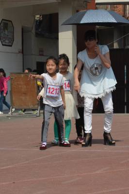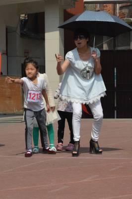 2014年大冶新街小学春季运动会,一年级接力比赛场面,老师着急的性子。