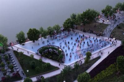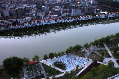5月4日下午拍摄的竹溪广场公园。近向年,竹溪县大力投入进行基础设施建设,将县城建设成山水园林城,打造成“城在山中,林在城中,人在画中”的宜居之城,滨河公园突现出山、水、人、城的和谐理念,成为人们休闲、健身的理想去处。