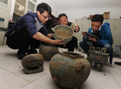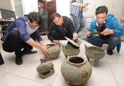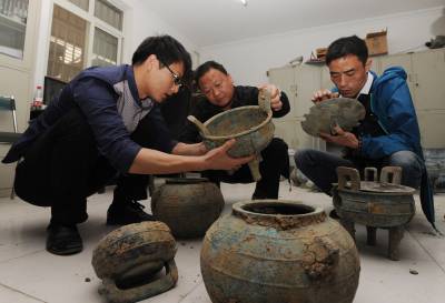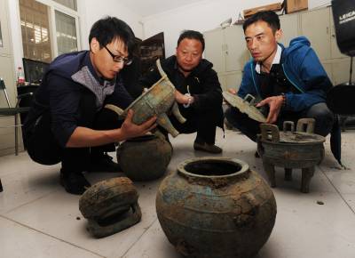 从发现文物后,当地公安部门迅速出动,后来又从周边农民处收缴了部分青铜器碎片,并移交文物部门进行修复研究。