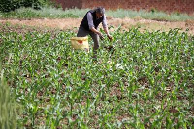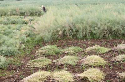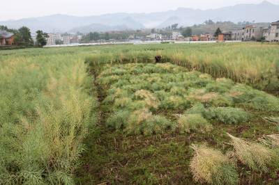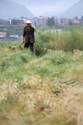 5月5日,竹溪县城关镇水寨子村一农民收割油菜。 立夏时节,油菜成熟,玉米、蔬菜、花生等农作物生长迅速,水稻插秧、豆类播种,竹溪县农民忙着夏收、夏种、夏管,田野里,一派繁忙的“三夏”(夏收、夏种、夏管)景象。