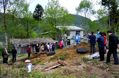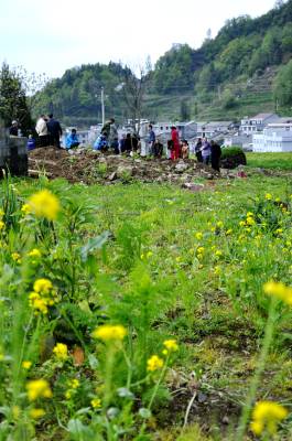 良田坟墓集体“入住新区” 5月5日,在恩施市红土乡集镇拓展新区,村民正在自发地迁移 “祖坟”。 近几年来,该乡因地制宜地制定集镇拓展新区,建设新农村,统一规划治理土地,出台以奖代补的办法,将规划区内的近200座坟山统一迁移到公墓。如今,这片昔日乱坟岗的“风水禁地”蜕变为招商引资、建设新农村的“风水宝地”。 推进新农村建设和殡葬改革谱写了新篇章。(本报视界网彭绍峰摄)