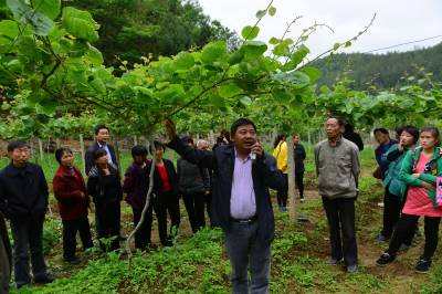 5月5日,建始县红岩寺镇桃园村党员技术服务队为果农讲授猕猴桃授粉技术。时下,正是猕猴桃春管关键时期,该镇由镇领导带队,组织一支支党员技术服务队,包村包户包田块,手把手教农户授粉、上架、防病虫害技术。同时镇里多方筹集资金数十万元,通过以奖代补方式,解决农户上架所需购买铁丝资金难,确保上千名猕猴桃种植户当年增收和来年产业增效。把技术课堂“搬”田间,把解难搬在一线,将践行党的群众路线教育足迹深深印田头,此举受到全镇广大农民啧啧称赞。本报视界网刘波摄