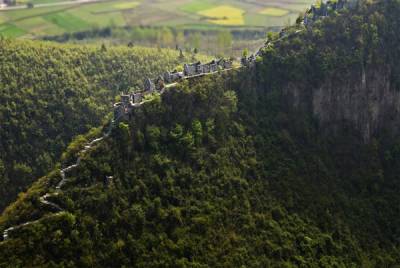春秋寨:位于湖北省襄阳市南漳县东巩镇陆坪村境内,又名陆坪寨、邓家寨,S250 省道76KM处,山寨海拔高270米。保存较为完整和集中。山寨遗世独立,危崖高耸。茅坪河对面山腰有山寨三处,类似古崖居。极具观 赏价值。 南漳县古山寨多,据初步统计就有200多座,东巩就有74座,是华夏大地上发现的最为完整、数量最多、历史风貌和生态环境较为完好的山寨文化奇观和传统山 寨。春秋寨是目前所知的襄阳市第一大古山寨,也是亚洲第二大古山寨,目前已经被批准为省级文物保护单位。春秋寨地形独特,山水交融,视野开阔,有“一夫当关、万夫莫开”之地利