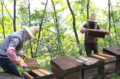 近年来,竹山县依托退耕还林等重点工程,紧紧围绕绿色增收这一目标,动员广大林农栽植桃树、杏李、槐树等花粉养料树种,每年春、夏季当地农民纷纷来到林间,探索林蜂放养模式,大力养蜂产业增加收入。同时该县成立了蜂蜜生产协会,组建了蜂蜜产业化合作社,全县蜂蜜生产基本形成分户经营、集中指导、严格质量、统一销售的发展格局,产品走俏县内外大中城市,深受消费者青睐。据了解,目前该县养蜂户已发展到176户,今年预计可产蜂蜜15万公斤,产值可达600万元。视界网(程平摄)