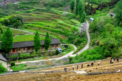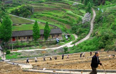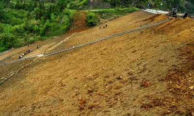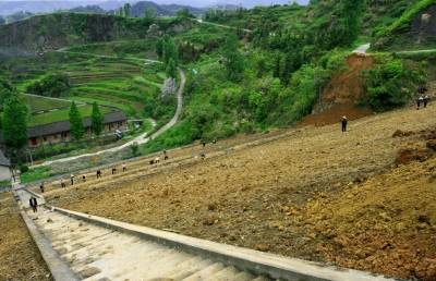 2014月26日:竹溪县给国家级龙湖湿地公园库水大坝披绿换装施工人员正在如火如荼的施工。