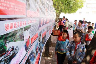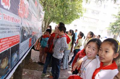 5月7日,竹山县宝丰镇施洋小学学生正在观看大型法制教育和交通安全教育图片展。连日来,该镇各中小学幼儿园加大法制教育和交通安全教育宣传力度,以“践行‘八荣八耻’,争当守法公民”、“关爱生命、安全出行”为主题,通过法制教育和交通安全教育图片展、播放专题教育片等一系列教育活动,有效增强广大师生的法制意识和交通安全意识。
