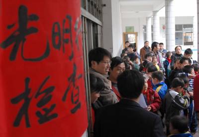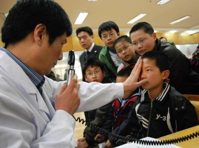 4月12日,来自武穴市城乡各小学的近300名弱视小学生,齐聚该市第二实验小学,接受武汉市光彩明天儿童眼科医院的医护人员的免费检测诊疗。通过此次活动,这些弱视儿童有望解除病痛,重拾光明。本报视界网刘飞摄
