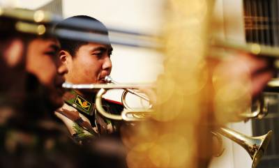 警营生活不再单调8日,武警潜江市中队的”乐手”们在一起练习管弦乐,该中队投入资金购买小提琴、吉他、二胡等乐器,聘请专业音乐教师为战士们进行辅导,在悠扬的乐曲声中,丰富警营文化生活。该中队积极打造特色警营文化,成立了乐队、魔术兴趣小组、建起了图书室、板报长廊、健身房。用和谐、快乐的警营文化励志育人,让警营生活不再单调。(新闻稿也作春来到征稿)本报视界网吴燕军摄