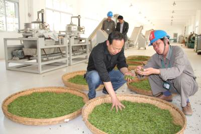 深山茶香富农家 5月7日,紫金供电所农电工正在孙家沟茶场帮助维护、检修供电设施,了解茶叶产销情况,传递茶叶市场信息。孙家沟村虽然地处山区,但近几年用电量却直线上升。电力不足,直接影响到茶叶的产销、品质、效益。国网谷城县供电公司急茶农所急,于去年底为该村新增一台200千伏安的变压器,电力制约茶叶生产发展的瓶颈不复存在。 本报视界网马明刚摄
