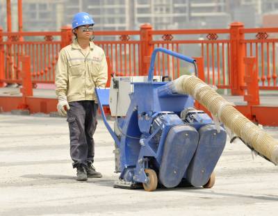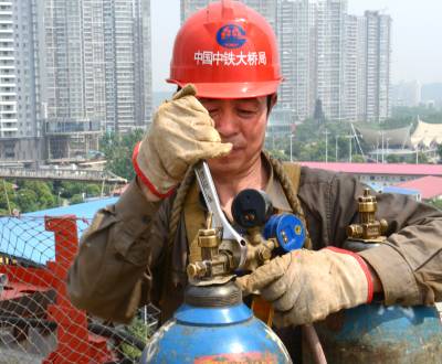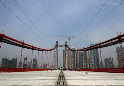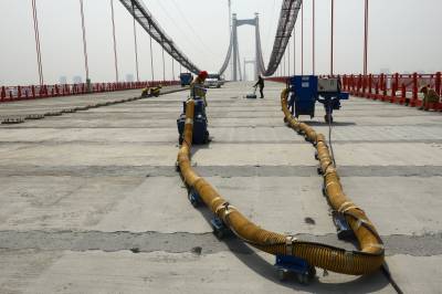 武汉鹦鹉洲长江大桥桥面正在为"刷黑"作准备