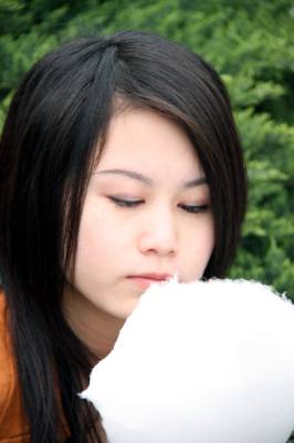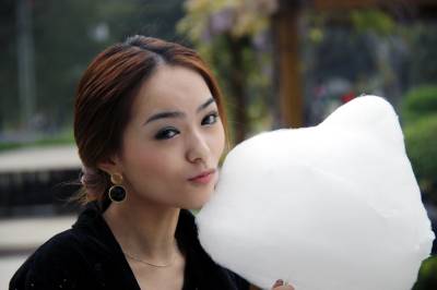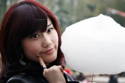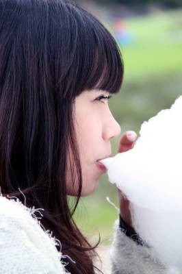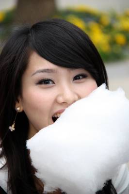 一次人像外拍的现场,几个美女不约而同地对路边的棉花糖发生了兴趣。