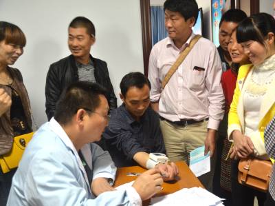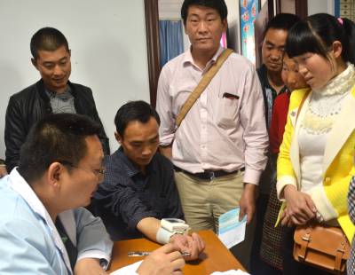 5月10日,巴东县计生服务中心医生正在为官渡口镇优检对象登记、测血压、发宣传资料。 为避免人口出生缺陷,全面提高出生人口素质,方便流动返乡参检对象,该县服务中心采取节假日加班、定点预约、乡镇设点等措施,免费开展孕前优生健康大检查。到目前已检查1300多对夫妇,发放优生优育知识宣传资料2000多份。巴东县官渡口镇政府 向传辉 电话 18963928551