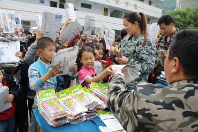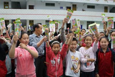 图二:学生们拿到自己用劳动换来的铅笔高兴万分