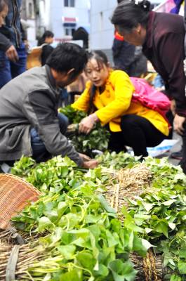 小秧苗蛮“抢手” 5月11日,在恩施市红土乡农贸市场上,村民们正在’抢”购红苕秧苗。 近段时间雨水较多,是扦插红苕秧苗的好时机。该乡低山村的农户有冬贮藏红苕的习惯,实行“农膜覆盖和稀植苕种”等育苗技术,可供石灰窑、鱼精坝等二高山的村组农户种植需求。目前,红土市场红苕秧苗价格每百株3元,比去年同期每百株上涨1元。﹙本报视界网彭绍峰摄﹚